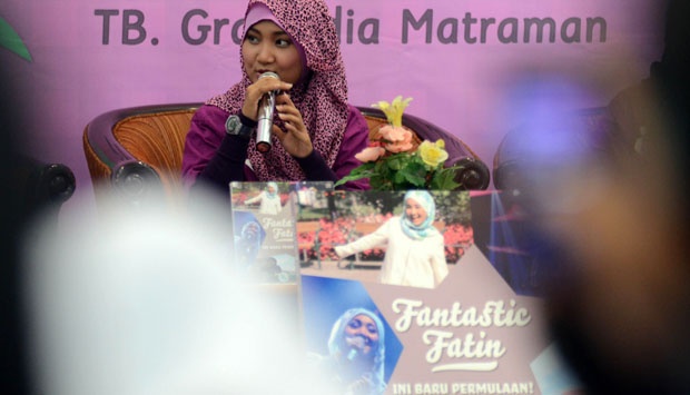 Fatin Shidqia menghadiri peluncuran buku Fantastic Fatin Ini Baru Permulaan di Gramedia Matraman, Jakarta, (10/12). Buku yang menceritakan kisah pribadi dan perjalanan karir remaja fenomenal Fatin Shidqia ini ditulis oleh Sundari Mardjuki. TEMPO/Nurdiansah